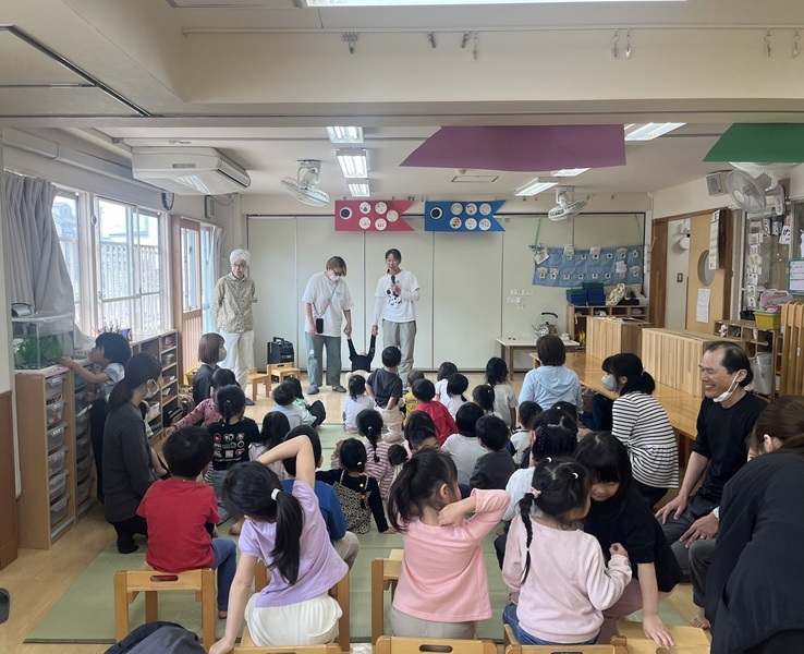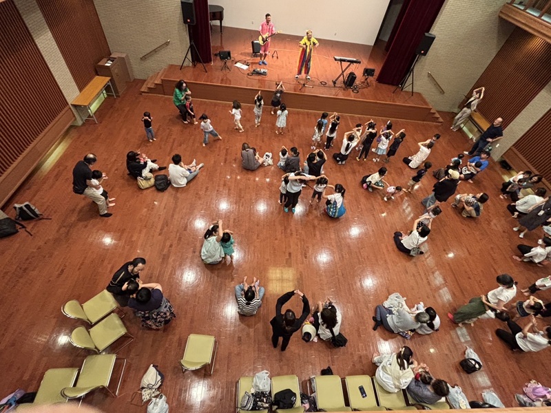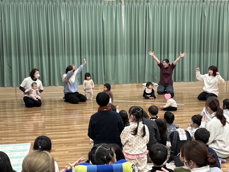 9月27日(土)故郷の家・京都(雲史ホール)にて「音楽で心と体を解放しよう!~親子で楽しい時間を過ごそう♬~」と言うテーマで遊び歌・手遊び・運動遊びをオリジナル作詞作曲し、子どもも大人も楽しめるコンサート合言葉に様々な場で活躍しているRukaさんと第2回BCCビートルズバンドコンテスト全国大会でグランプリを獲得されたPoNnchanさんによる子育て公演がありました。 RuKaPoNさんの元気なあいさつから始まり、緊張している子どもたちがいる中でのスタート!緊張しておうちの人から離れたくない気持ちから楽しい音楽、ふれあいあそびなどから少しずつ子どもたちのこころがほぐれて笑顔が増えてきましたよ。洗濯の歌や「たわしなのわたし~」と歌いながらおうちの人やお友だちと手を繋ぎ楽しい輪が広がりました!スパゲッティーの歌では子どもたちの意見を組み合わせた振付を即興で考えてくださり、一緒に作り上げていましたよ。子どもも大人も一緒に身体を動かして楽しい熱気が!幸せなら手をたたこうを色々なパターンとリズムでも楽しみました。アンコールも出てきてくださり、最後まで楽しい時間を過ごすことができました。 ありがとうございました。 |