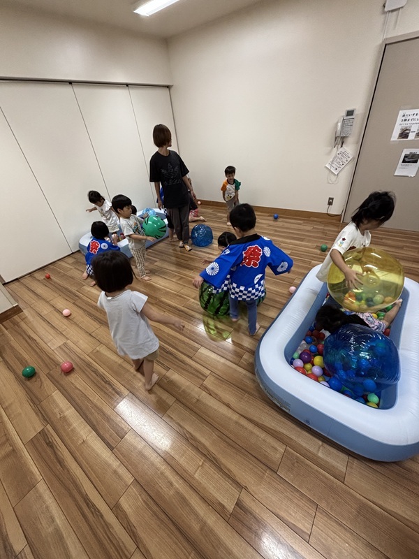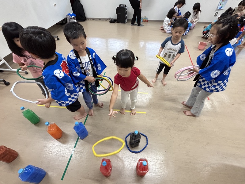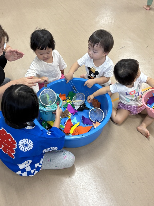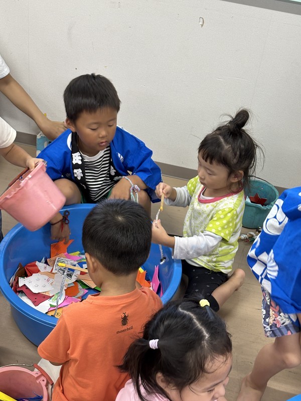 9月2日にすずらんさん主催による「こどもまつり」がありました。 各遊びコーナーをすずらんさんが担当してくれました。 乳児さんから順に遊びに来てくれるとお出迎えの歌を歌って場を盛り上げます。 さかなつり、ボールプール、わなげと各コーナーでみんな楽しそう。 夏の間にコツコツかんなさんと、折り紙で魚をたくさん折り、タライの中は魚でいっぱいになりましたよ。 お土産もあって、すずらんさんが紙コップのお花をプレゼントしてくれました。 すずらんさんありがとう(*´艸`*) みんなすごくたのしかったよ~ |