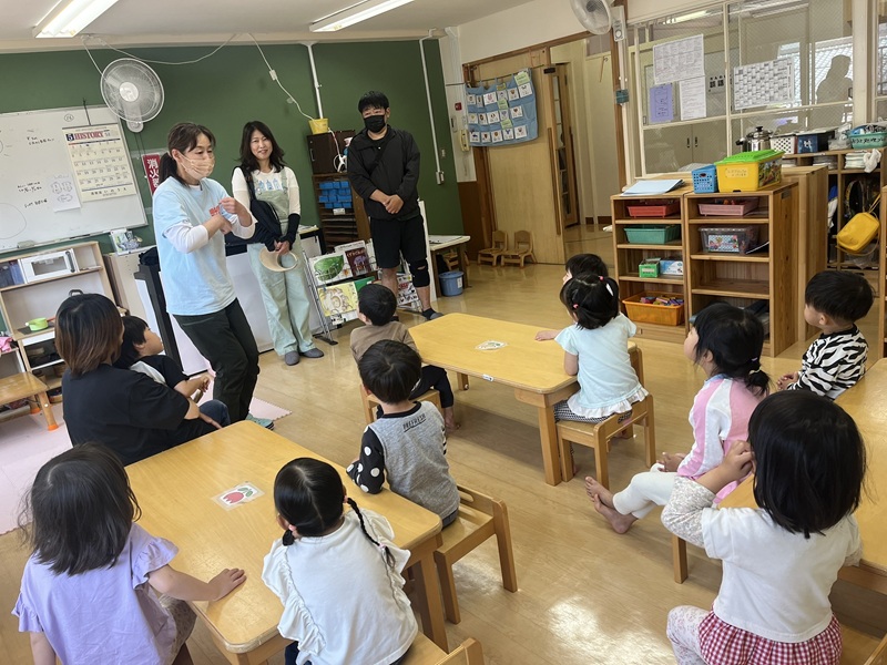 今年度の多文化共生保育。昨年度に引き続き「サンナさん」に来てもらい 1年間、多様な文化の交流遊びを繰り広げていく予定です。 今日は幼児さんと過ごしました。 紹介から始まり、隣りの公園、絵本を読んでもらいましたよ。 子ども達との柔らかい交流が写真から伝わってきますね。 サンナさん、今年も1年よろしくお願いします。 |