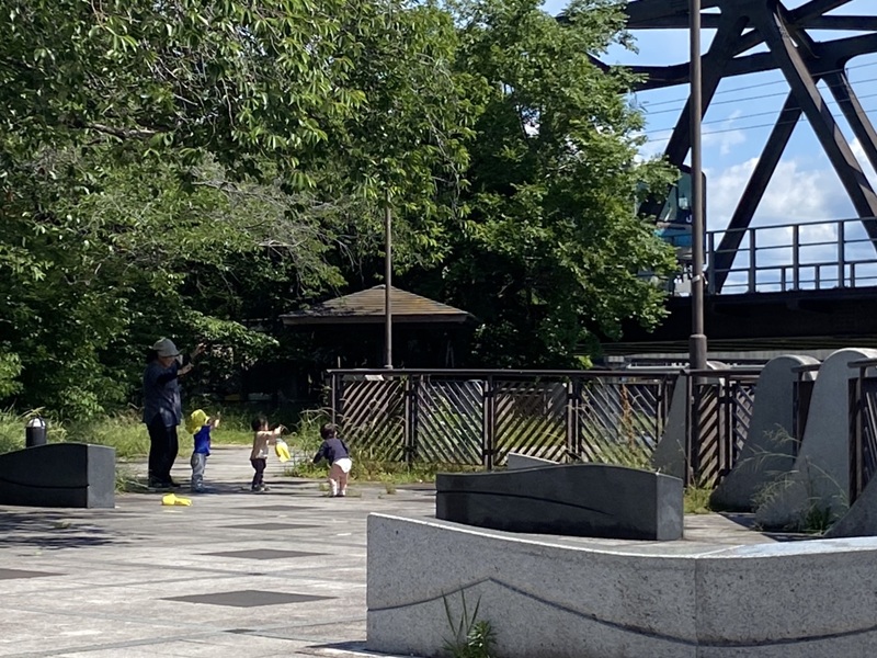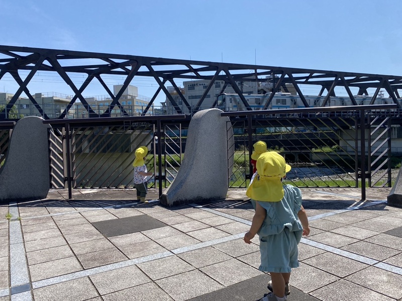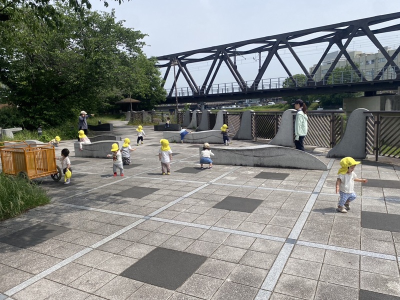 ぽかぽか天気のいい日、わかば公園に出かけました。 ばらぐみの子どもたちの大好きな場所です。 「よーいドン!」の保育士の声ににっこにこで走ったり歩いたり。 電車や対岸の道にトラック、バスが通ると 「ワー!!」「でんしゃ!」「トラック♪}と嬉しそうに 指をさして見つめていました。 |