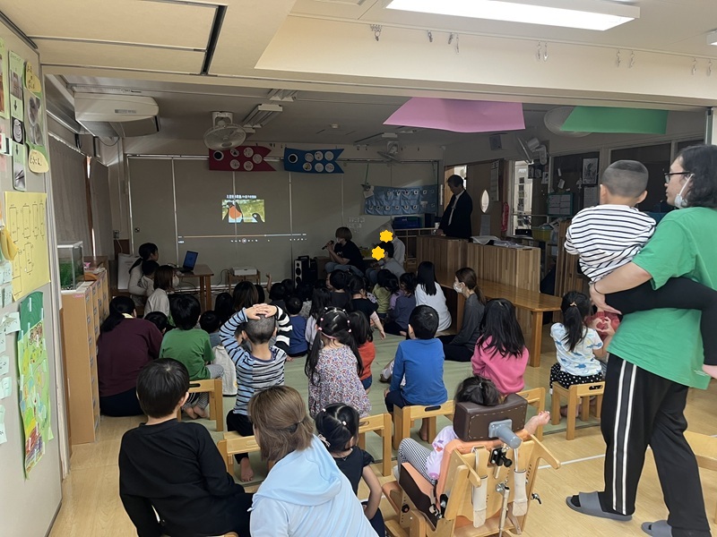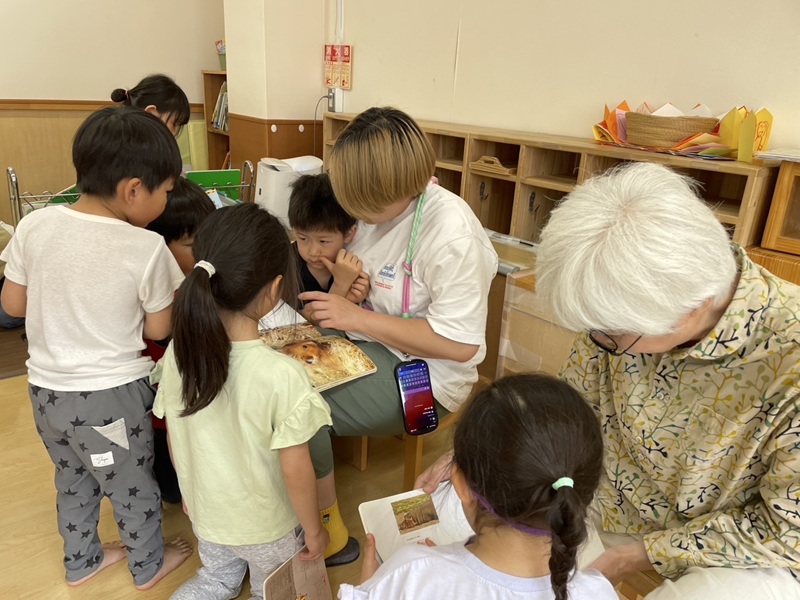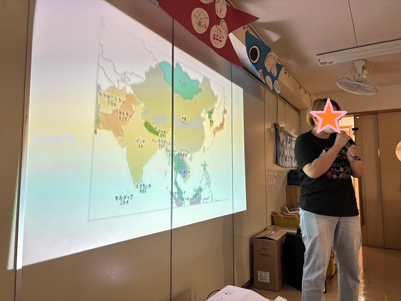 5月。 2回目の多文化共生保育では、サンナさんに歌やサンナさんの「国」について 教えていただきました。 「小さなつばめの子」は画像もあって、みんな集中して聴いていましたよ。 その後は地図などを見ながらサンナさんの国 「モンゴル」についても教えてもらいました。 |
