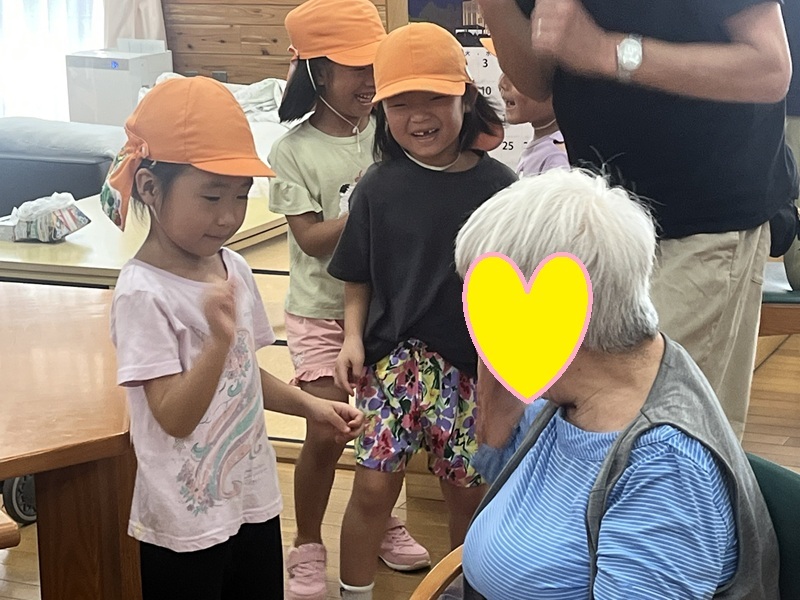 9月中旬「敬老の日」をお祝いして各施設にクラスごとにお祝いに出かけました。 ここ数年は「コロナ」の流行を境に訪問ができなかったのですが 今年は行く事ができました。 歌をプレゼントしたり、触れ合ったり、 小さな子たちの存在は、ただそこにいるだけで大きな癒しの心が生まれるようでした。 お年寄りの方々の心優しく包み込んでくれるような微笑みに、 年齢を超えた、互いの交流は、心豊かになる姿が溢れていました。 |